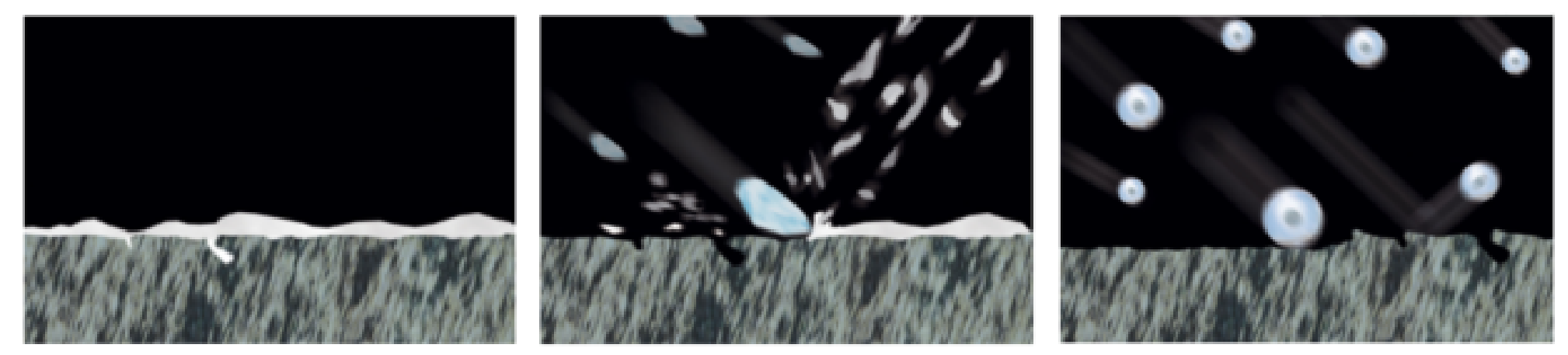 MS 300A 有效去除加工痕迹,如磨痕,机加工痕迹,电火花结构氧化层。 MS 550B MS550 BT 进一步改善表面光洁度,实现模具离模性改善,特别是注塑模具的寿命,可以因此提升30-40%,有效提高效率。因此此喷砂工艺需要有效结合喷砂稳定的超低压处理方式来完成微